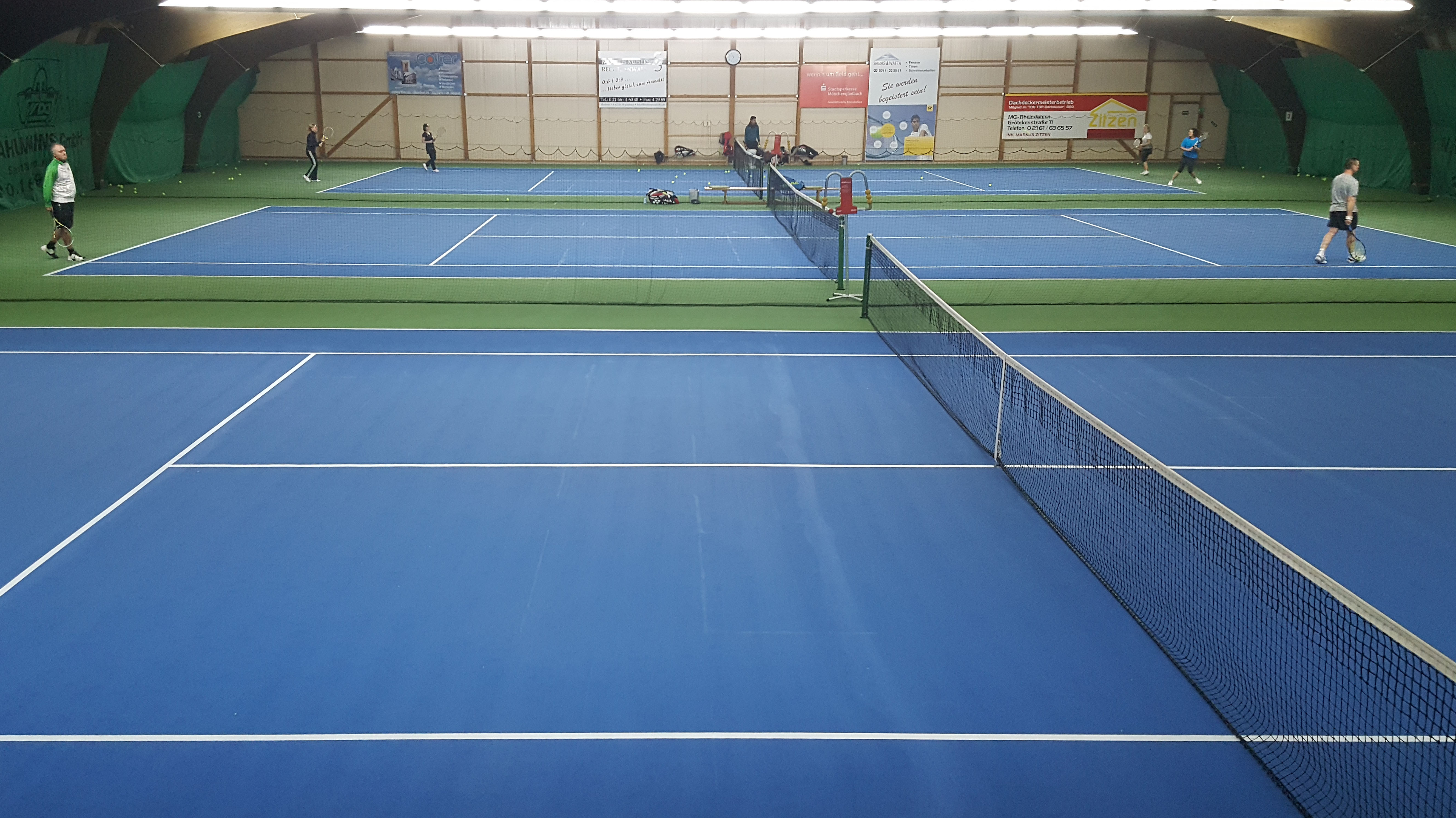Darüber hinaus haben Sie die Möglichkeit, im Winter einen Panoramablick direkt vom Clubhaus auf die Hallenplätze zu werfen.
